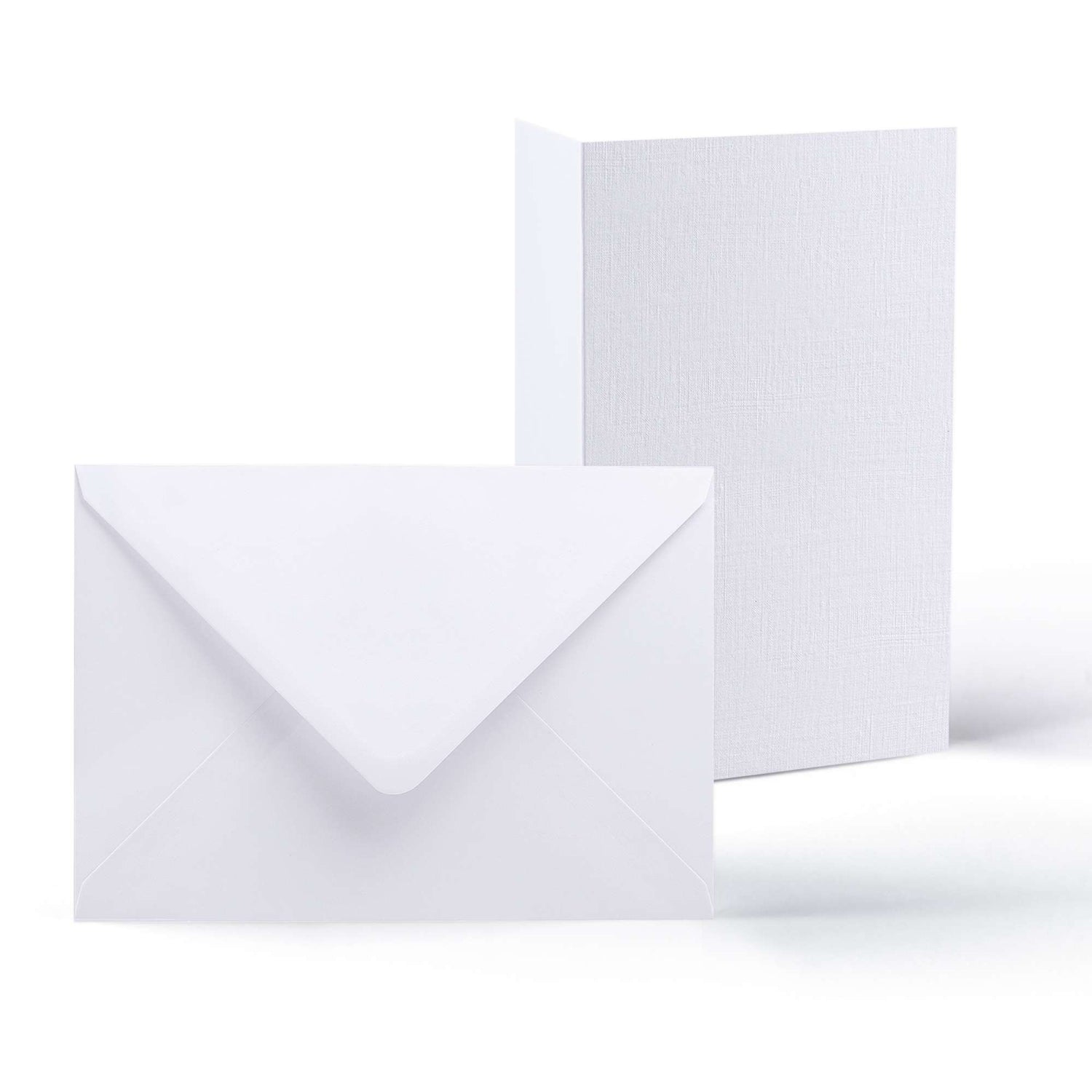 Pack elegante de tarjetas con textura de lino (300 g/m²) y sobres a juego (100 g/m²).